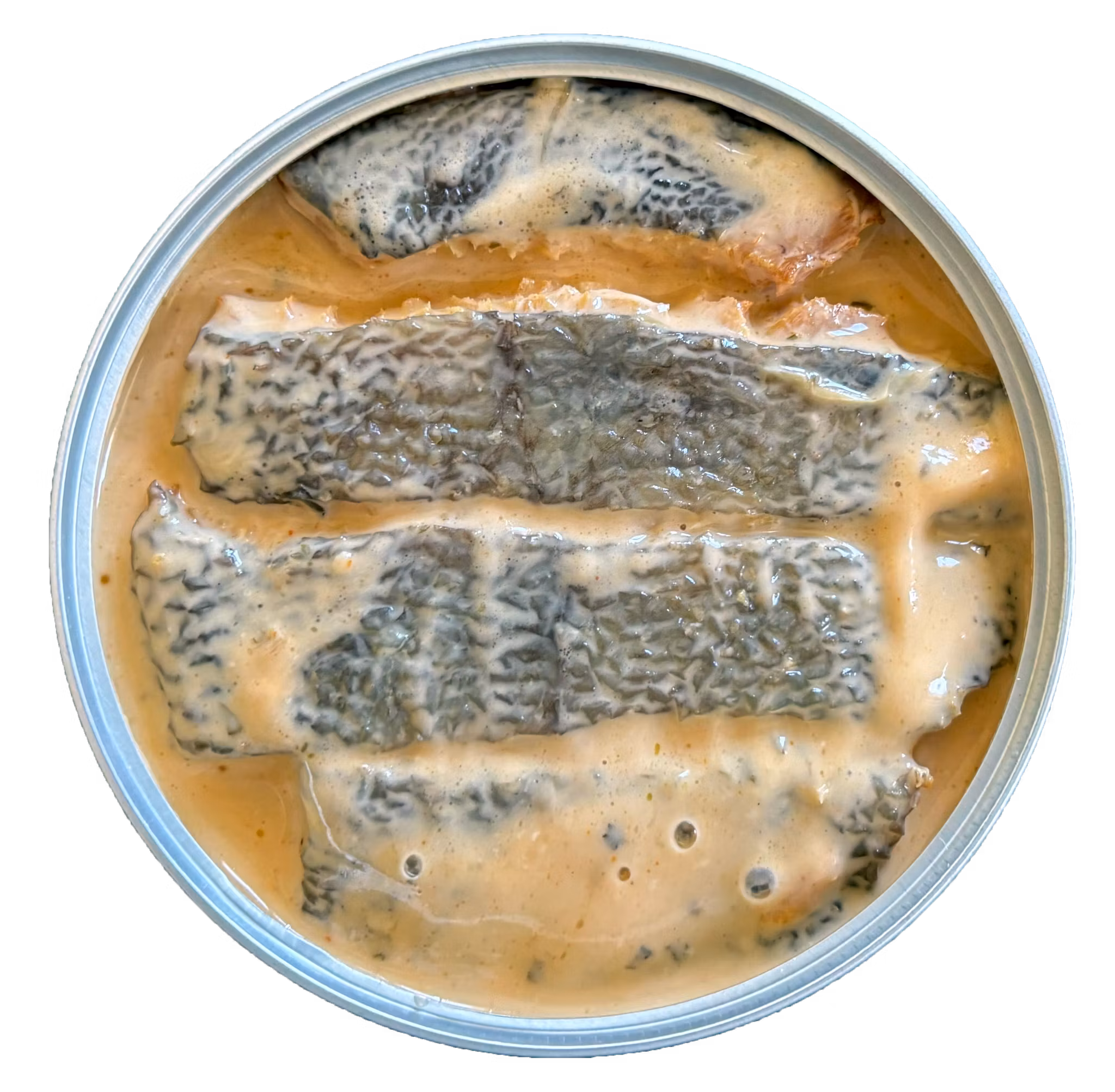 Sankt Pers Fisk (Zeus Faber) inlagd i en mild sås med Mynta. Konsistens på fiskköttet är lite som det vita köttet i krabba, lite torr men ändå saftig. I eftersmaken kommer en svag smak av mint, inte mycket, och det är inte oangenämt! På engelska kallas fisken John Dory under det namnet kan man ibland se den på menyer i södra europa och då oftast grillad och aldrig billig. Detta är en exklusiv fisk. Passar mycket bra med lite nykokt mandelpotatis.